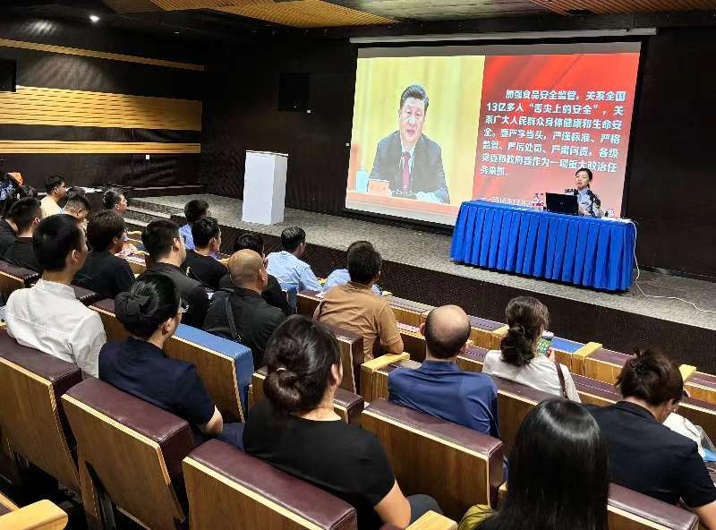 活動(dòng)中,珠山區(qū)市監(jiān)局的工作人員首先解讀了《中華人民共和國食品安全法》《餐飲服務(wù)食品安全操作規(guī)范》等法律法規(guī),從食品進(jìn)貨查驗(yàn)、采購索證索票制度、加工場所環(huán)境衛(wèi)生、食品留樣操作、從業(yè)人員健康管理、餐具消毒等環(huán)節(jié)進(jìn)行講解,要求各餐飲店在購買原材料時(shí),嚴(yán)把質(zhì)量關(guān),建議大家選擇正規(guī)渠道采購,索取相關(guān)的檢驗(yàn)檢疫合格證明。接下來,工作人員解讀了《中華人民共和國反食品浪費(fèi)法》,倡導(dǎo)“厲行勤儉節(jié)約、反對鋪張浪費(fèi)”,要求各餐飲店將珍惜糧食、反對浪費(fèi)納入培訓(xùn)內(nèi)容,并在醒目位置張貼或者擺放反食品浪費(fèi)標(biāo)識(shí),主動(dòng)對消費(fèi)者進(jìn)行防止食品浪費(fèi)提示提醒,引導(dǎo)消費(fèi)者按需適量點(diǎn)餐。工作人員還現(xiàn)場發(fā)放了食品安全宣傳資料,提醒大家切實(shí)增強(qiáng)主體責(zé)任意識(shí)、安全意識(shí)和法規(guī)意識(shí),時(shí)刻緊繃食品安全這根“弦”,有效提高從業(yè)人員的操作技能和安全員的管理水平,從而達(dá)到規(guī)范經(jīng)營、科學(xué)管理、高效防控的目的。