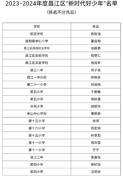 據(jù)悉,經(jīng)層層推薦評(píng)選出的20名“新時(shí)代好少年”,是昌江區(qū)廣大未成年人的先進(jìn)代表,他們積極踐行社會(huì)主義核心價(jià)值觀,在弘揚(yáng)中華優(yōu)秀傳統(tǒng)文化、傳承紅色基因、自強(qiáng)不息、樂(lè)于助人等方面表現(xiàn)突出,充分彰顯了新時(shí)代未成年人朝氣蓬勃、向上向善、樂(lè)于奉獻(xiàn)的精神風(fēng)貌,讓全區(qū)廣大未成年人學(xué)有榜樣、行有楷模、趕有目標(biāo),讓榜樣力量引領(lǐng)校園新風(fēng)尚。