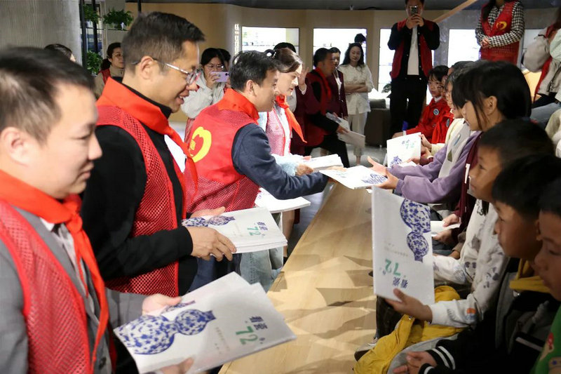 隨后,學(xué)生代表為參加活動(dòng)的領(lǐng)導(dǎo)嘉賓、愛(ài)心人士佩戴紅領(lǐng)巾表達(dá)謝意;領(lǐng)導(dǎo)嘉賓們?yōu)楹⒆觽兎职l(fā)新書(shū)。