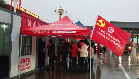 市衛(wèi)生學(xué)校黨員志愿者在高速路口西站開(kāi)展志愿服務(wù)。