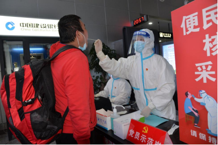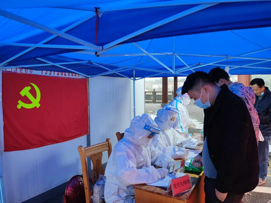 市四院黨員先鋒隊(duì)為抵景人員免費(fèi)采集核酸